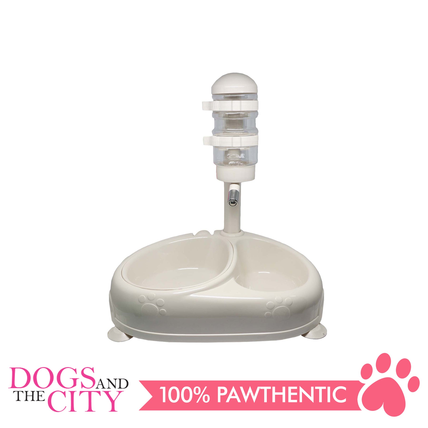 Dual food and water bowl design. This 2-in-1 Water and Food double bowls system holds dog food and water in the same set, making it easier to keep it full during dinner time.