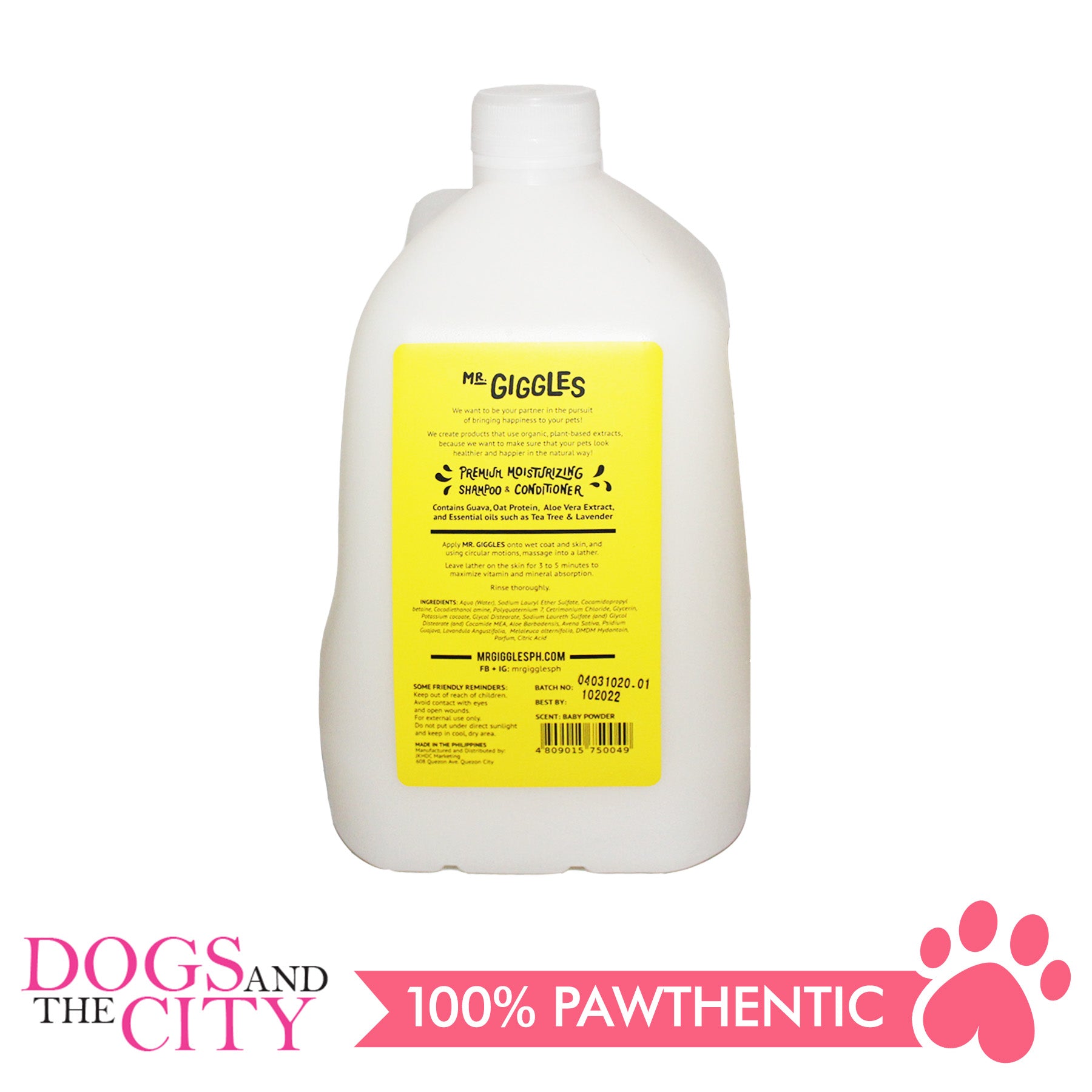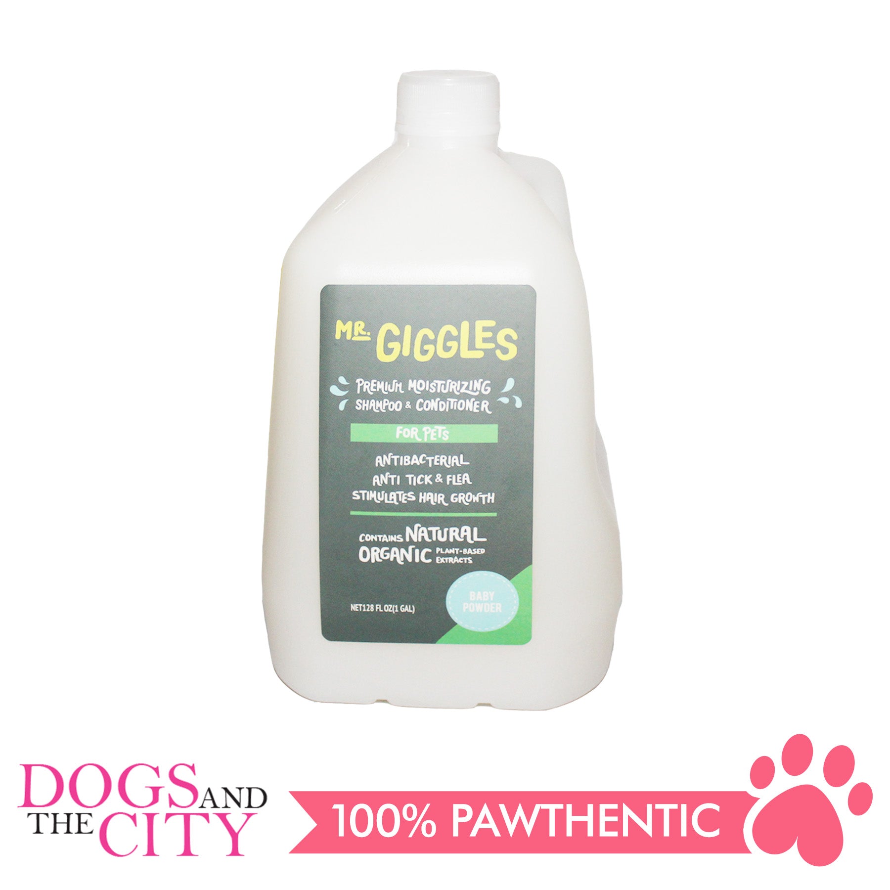 - Mr. Giggles is a premium moisturizing shampoo and conditioner for pets. It has antibacterial, anti-tick and flea and also stimulates hair growth of your pets.