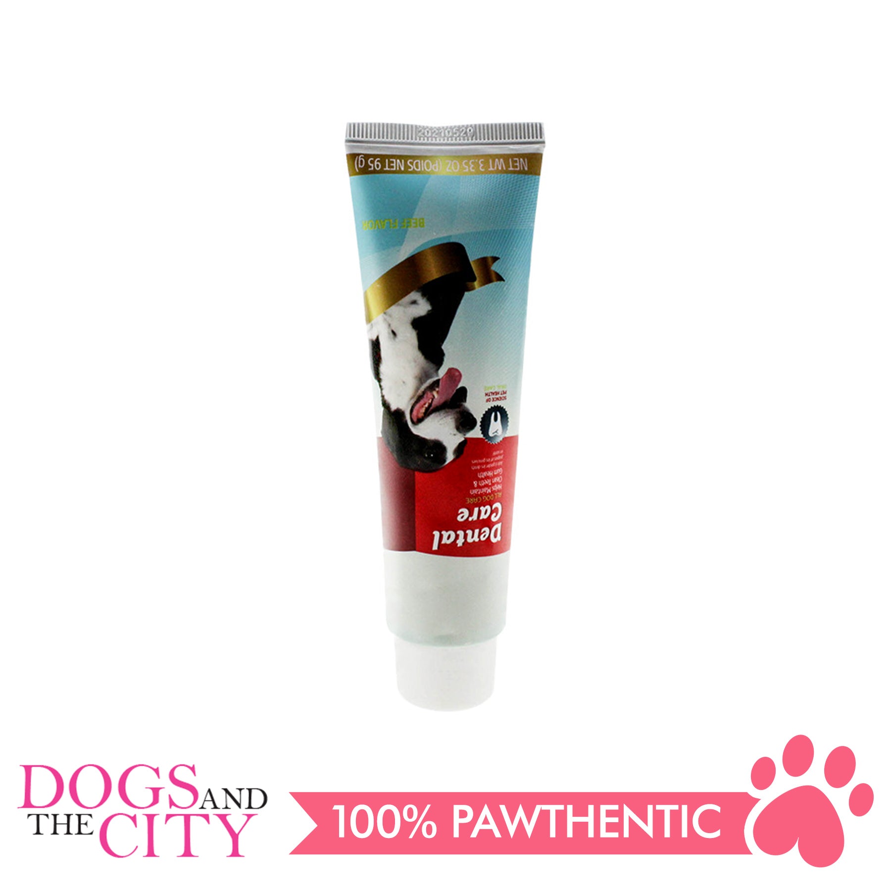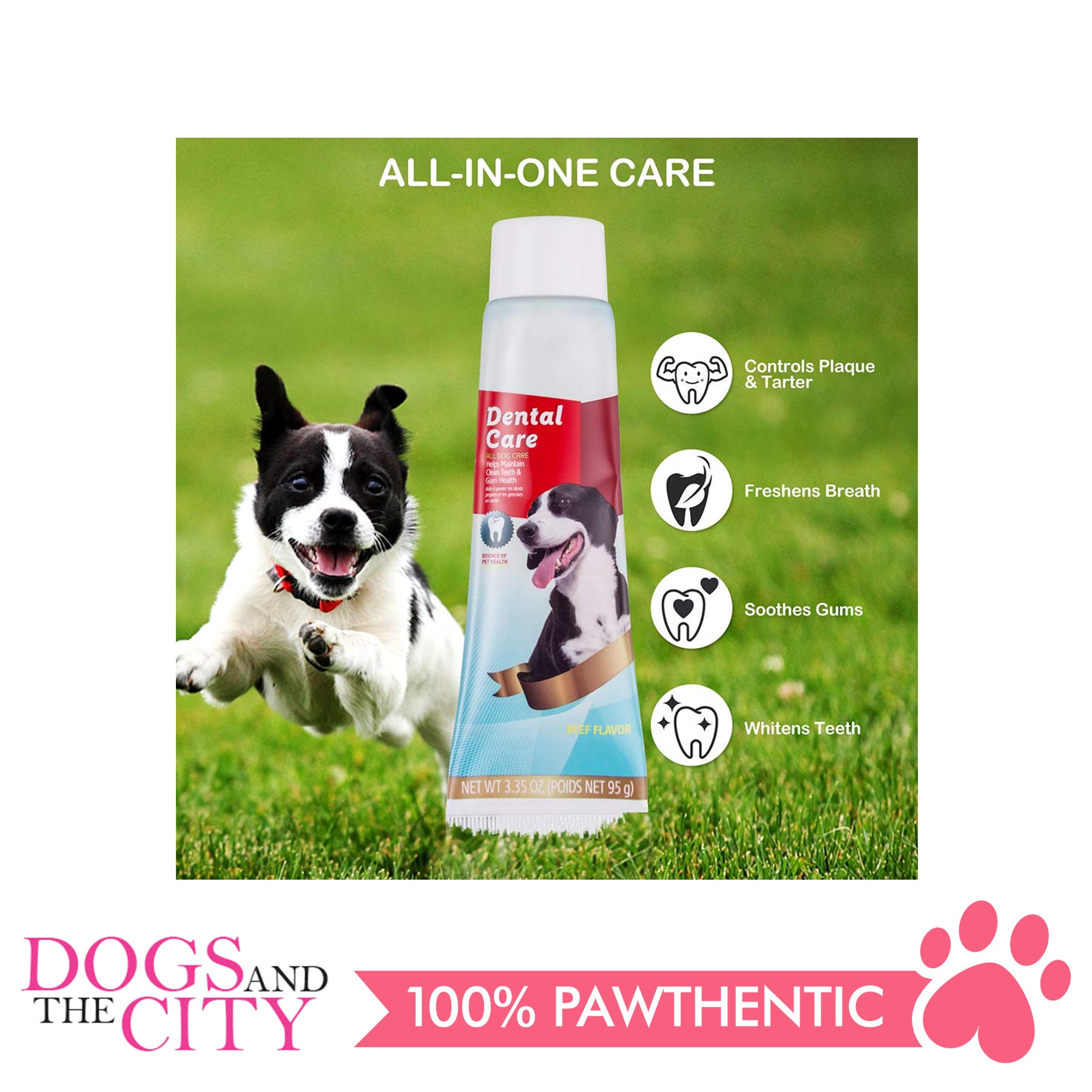 Step Three: Place a small amount of the dog meat toothpaste on his finger, and let him lick off it. Never use human toothpaste for your dog as it can be toxic to them.
