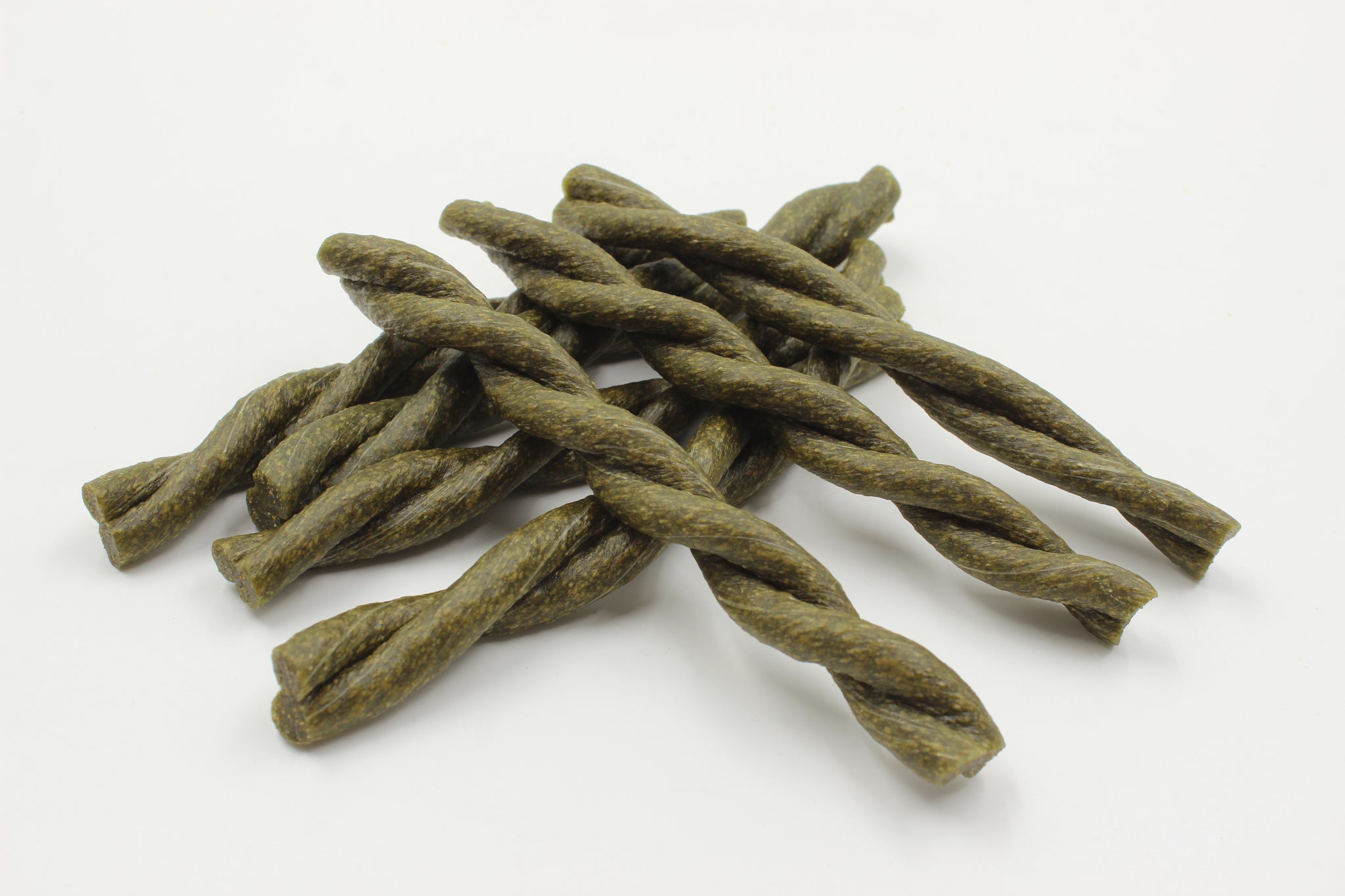 AVOCADO TWISTS with calcium carbonate. Teeth Cleaning, Low in Fat, No Added Sugar. The Dental line of the proper cleaning and deep hygiene of the dog's mouth. Each snack performs targeted a specific action thanks to its functional ingredients for the dog's health at any age: all the benefits of the avocado, rich in vitamins and antioxidants, with the slightly abrasive action of the calcium carbonate to remove food residue.