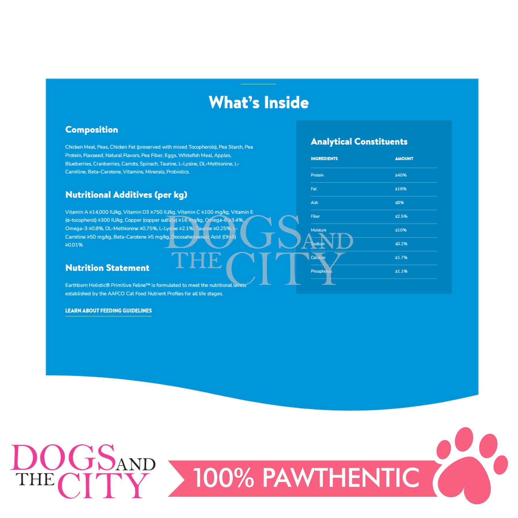 • EARTHBORN HOLISTIC Primitive Feline provides complete nutrition and a balanced diet without the use of grains, artificial colors, flavors or preservatives. Color varies naturally.