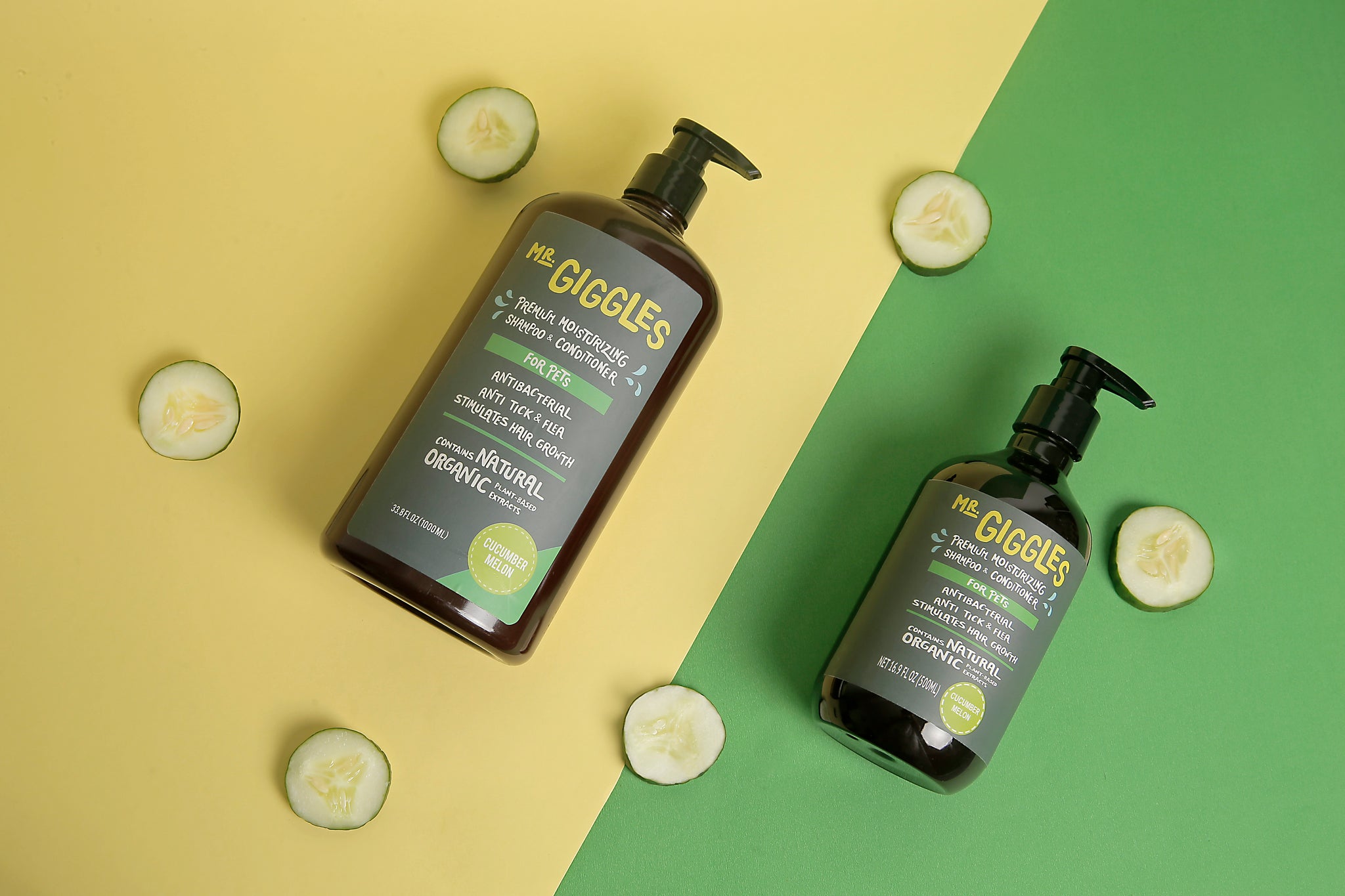 Mr. Giggles is a premium moisturizing shampoo and conditioner for pets. It has anti-bacterial, anti-tick and flea and also stimulates hair growth of your pets.