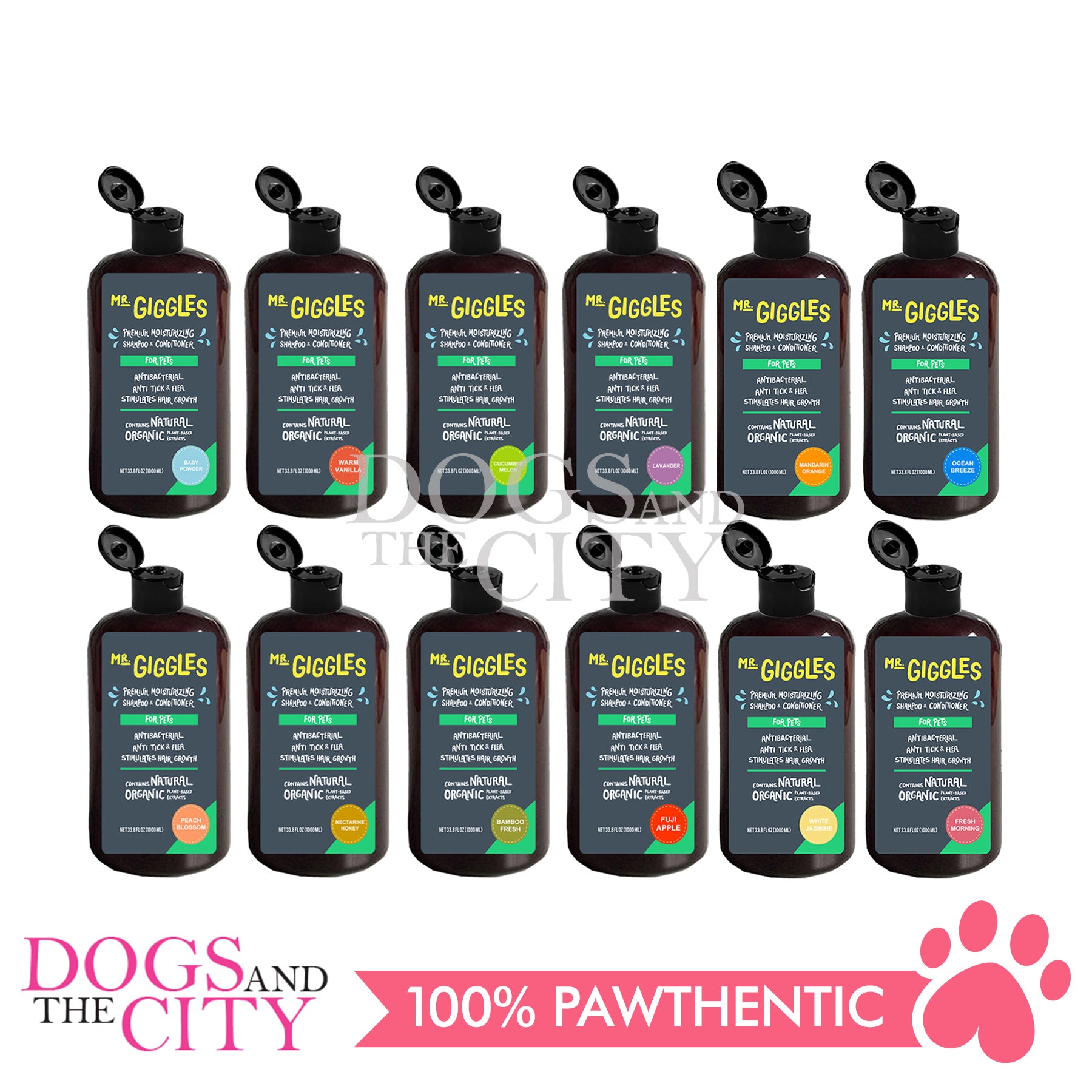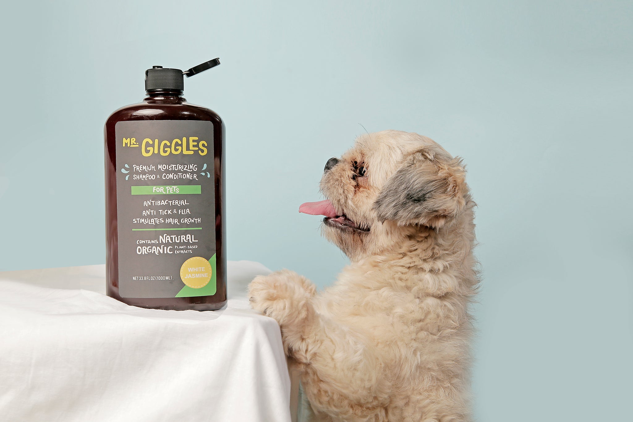 Mr.Giggles is a premium moisturizing shampoo and conditioner for pets. It has antibacterial, anti-tick and flea and also stimulates hair growth of your pets.