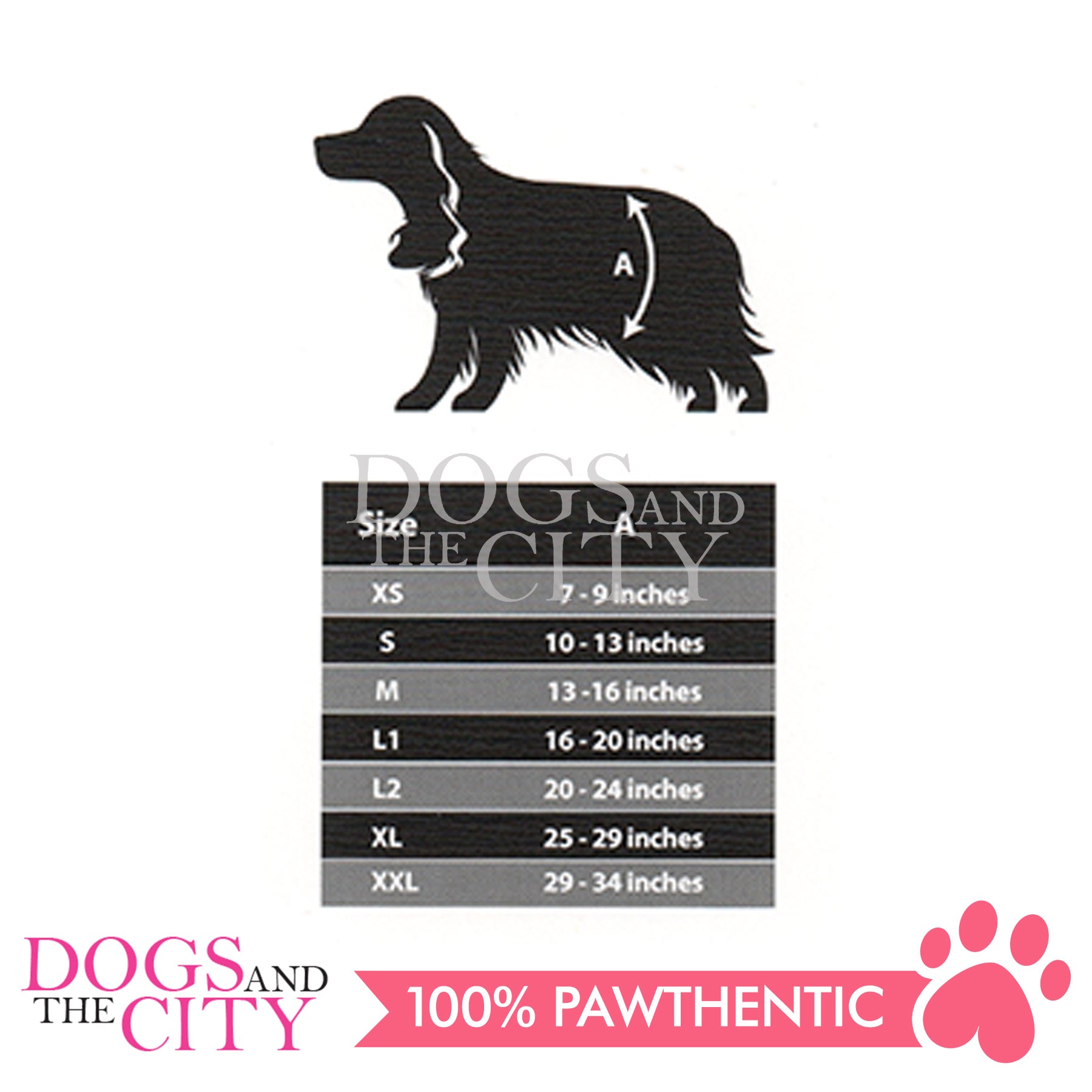 - Please refer to the size guide posted in the additional photos to check the best size for your pet. Ensure you measure your dog's waist right in front of the back legs to achieve a perfect fit.