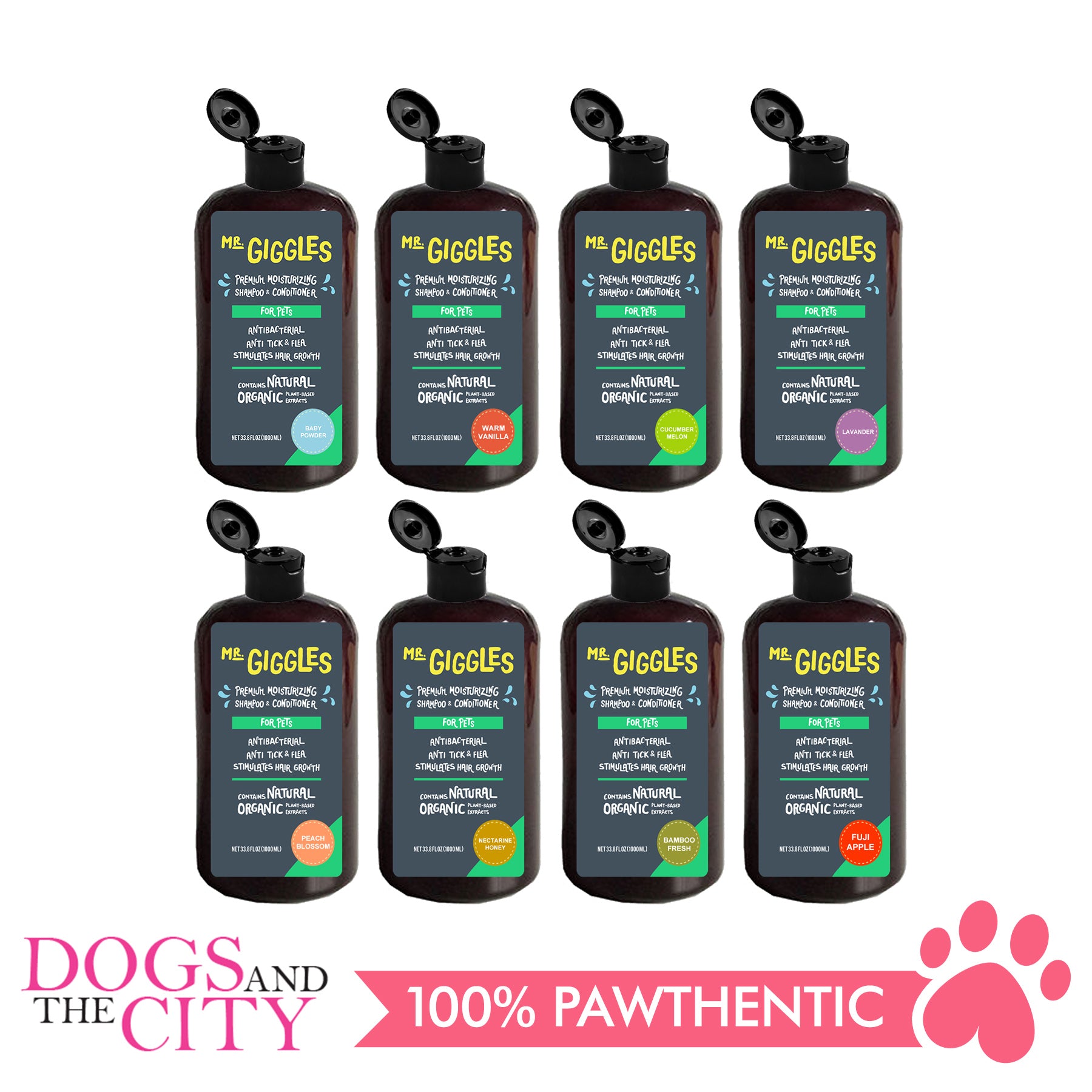 Mr.Giggles is a premium moisturizing shampoo and conditioner for pets. It has antibacterial, anti-tick and flea and also stimulates hair growth of your pets.