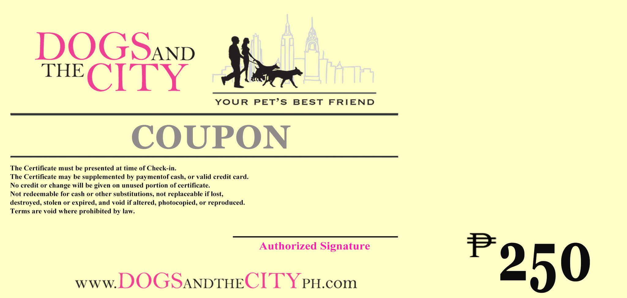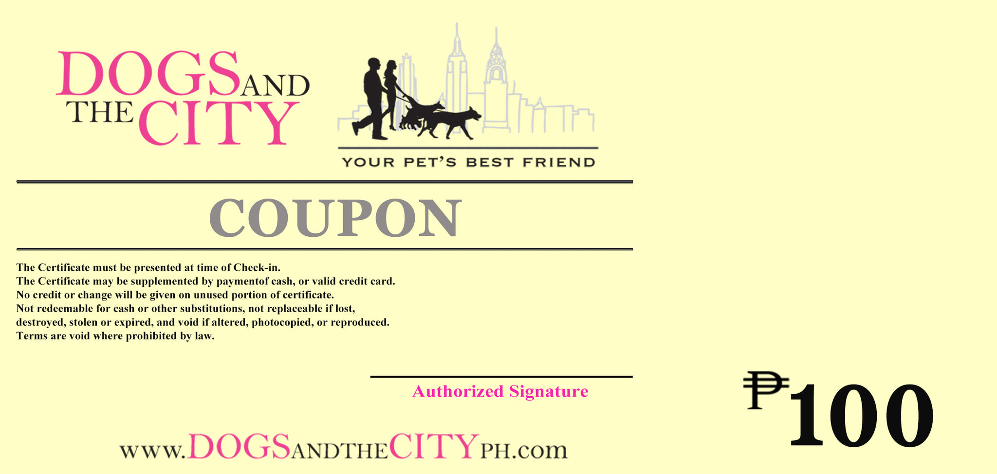 - Valid at all Dogs and the City Branches