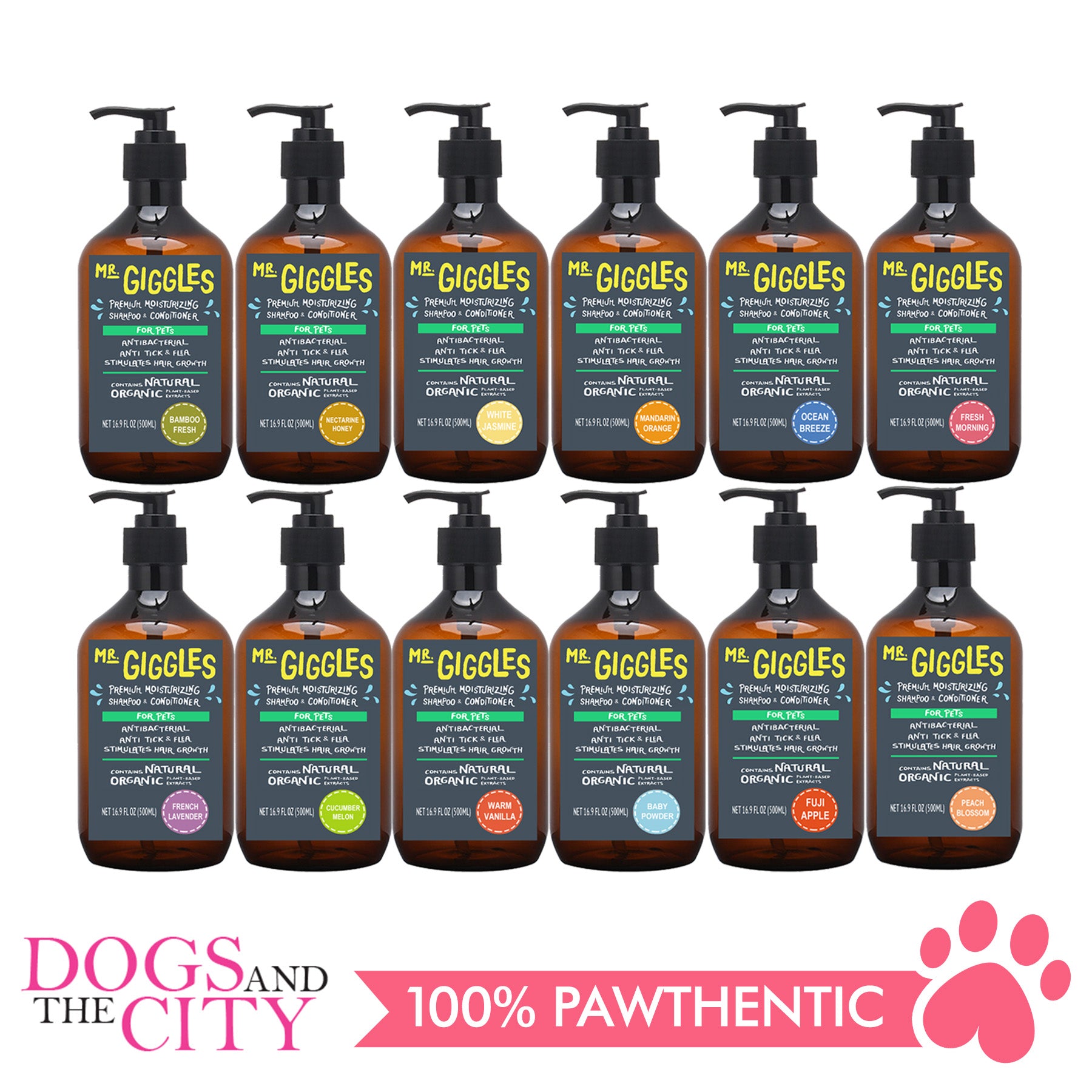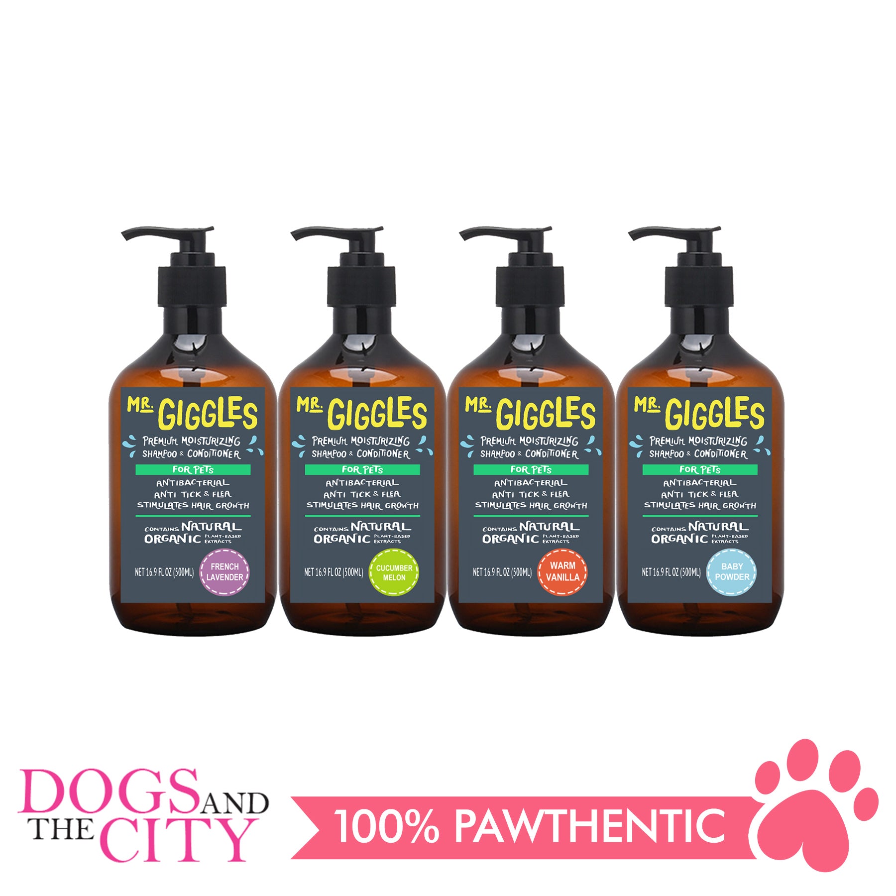 Mr. Giggles is a premium moisturizing shampoo and conditioner for pets. It has antibacterial, anti-tick and flea and also stimulates hair growth of your pets.