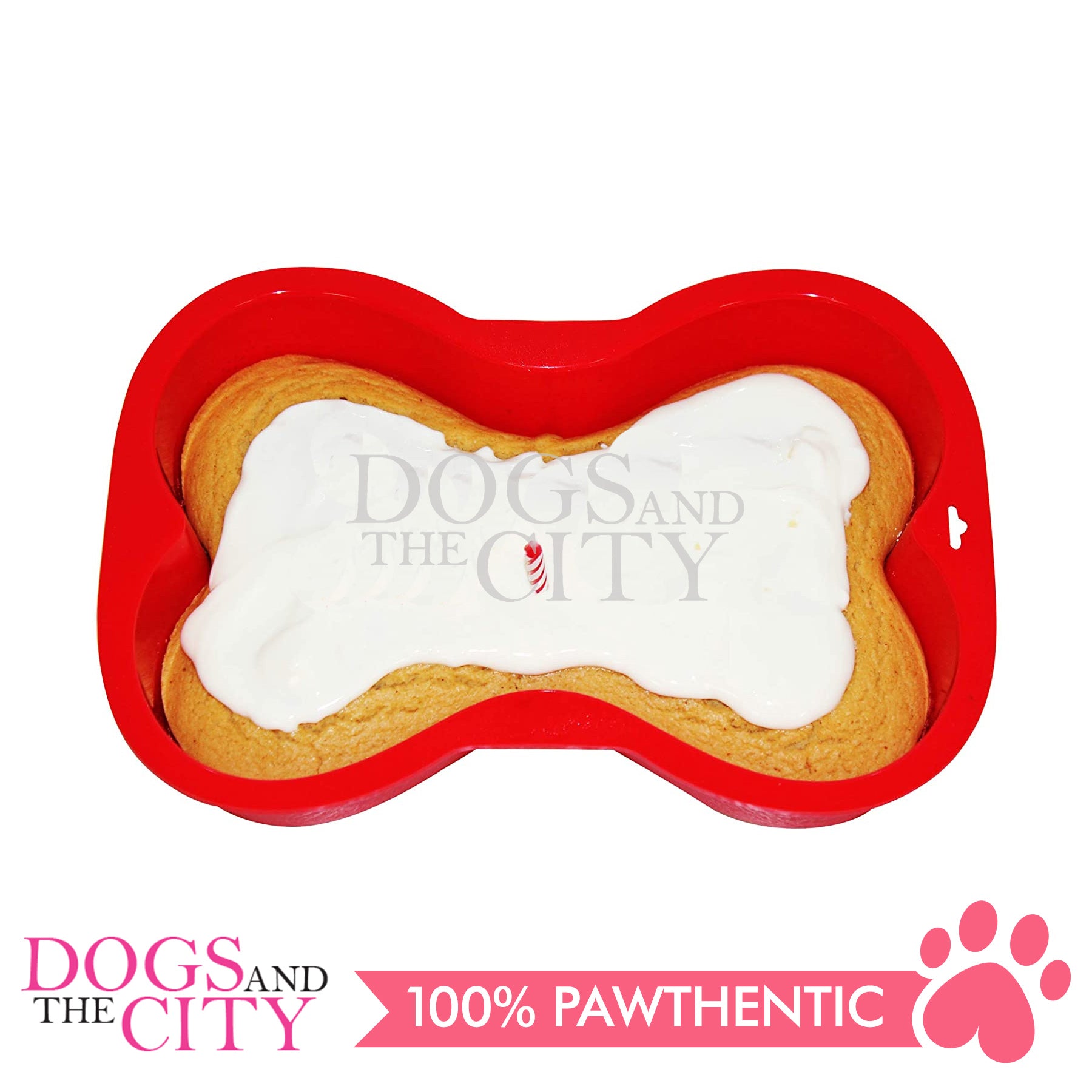 - CUTE - This 7 inches x 10 inches x 2 inches dog bone shaped cake pan is food grade non stick silicone.