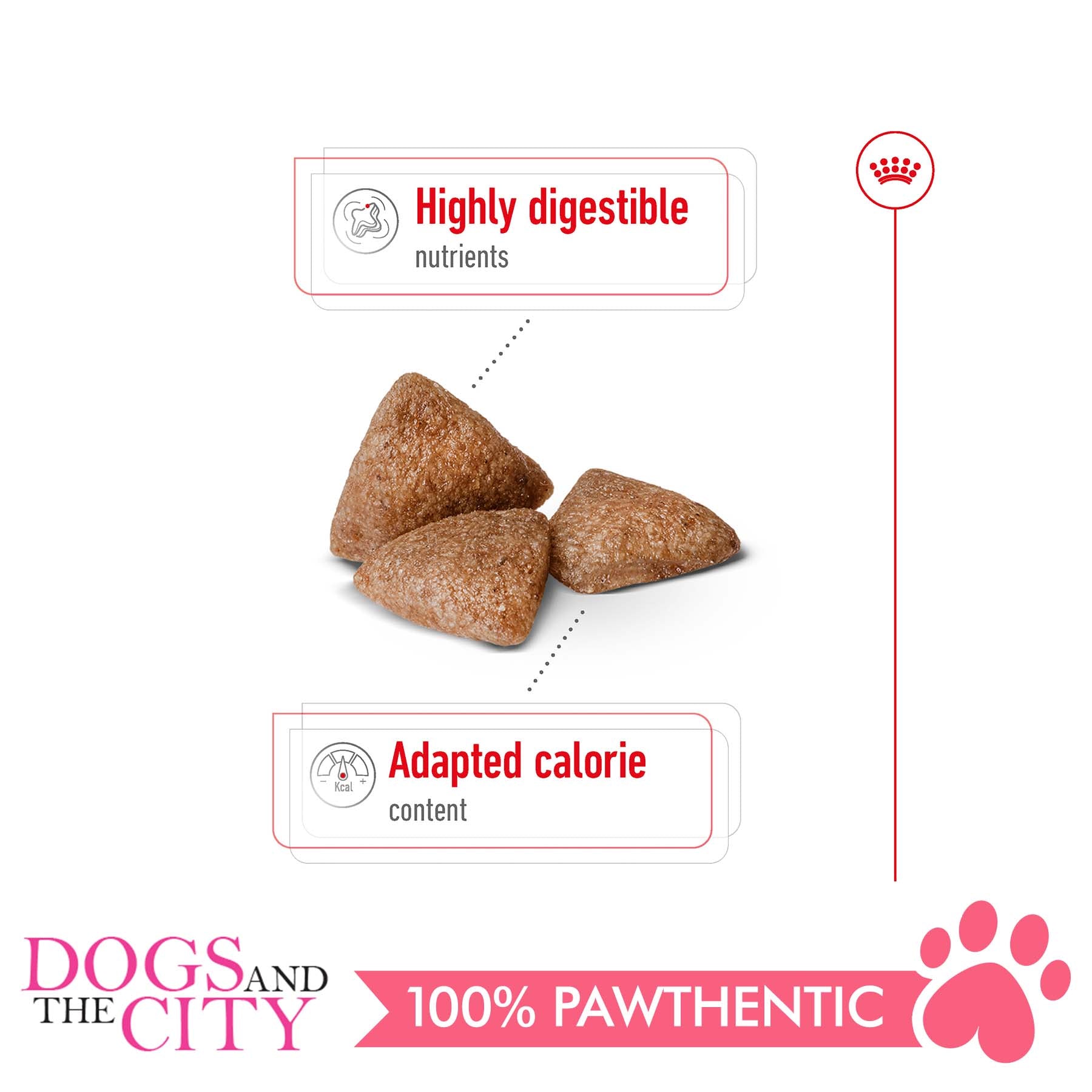 The Royal Canin Mini Indoor Adult is formulated with an exclusive combination of nutrients to aid in maintaining an ideal weight for their indoor lifestyle. The L-carnitine present in the kibble helps promote fat metabolism.
