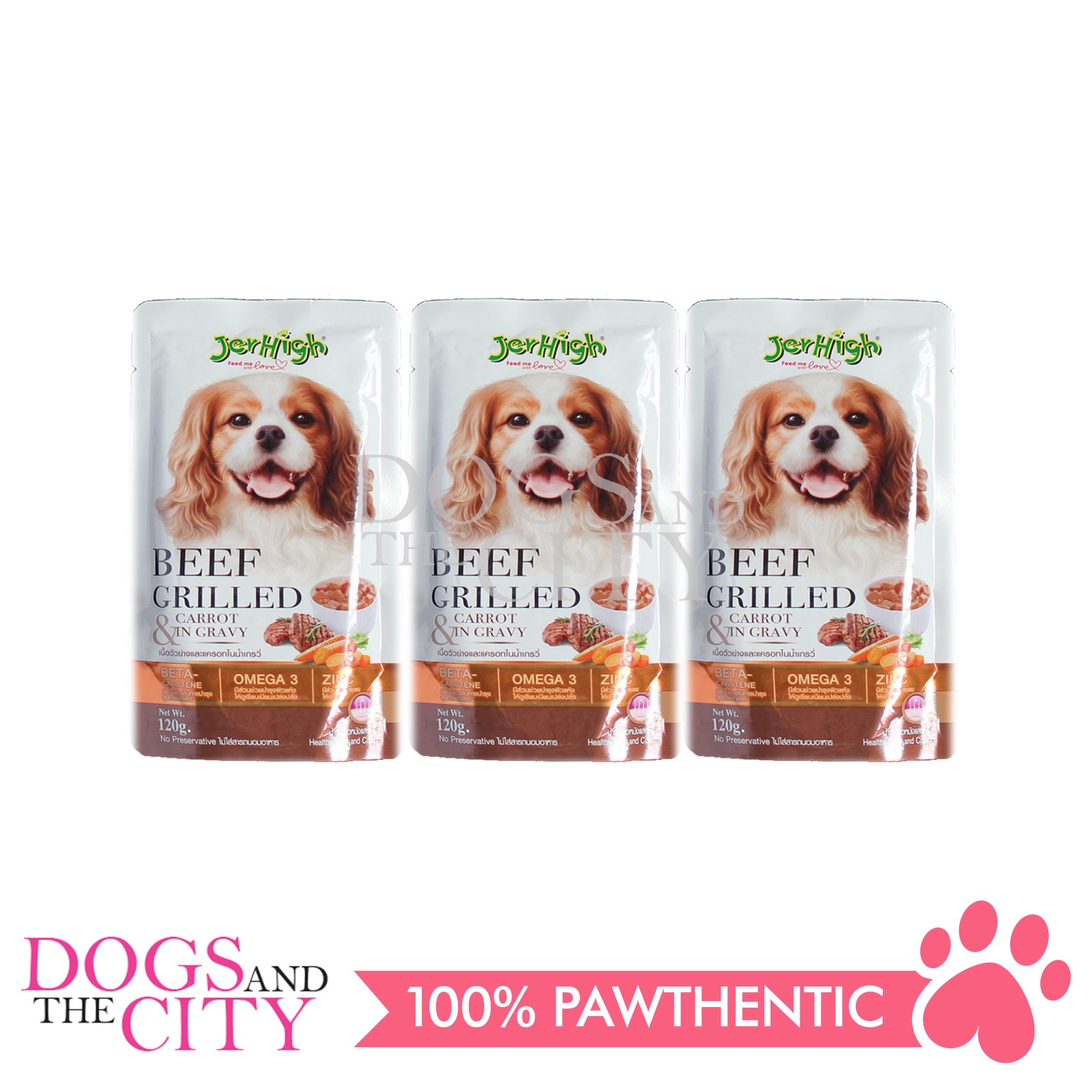 JerHigh Beef Grilled & Carrot In Gravy is made from real beef meat and has been precisely prepared by our highly experienced expert team. It has also been researched and meticulously tested in the laboratory to ensure that the treat is hygienic, safe, and filled with all of the nutrients man’s best friend needs. You sure can reward them regularly with JerHigh Beef Grilled & Carrot In Gravy so they always stay healthy, happy, and full of energy.