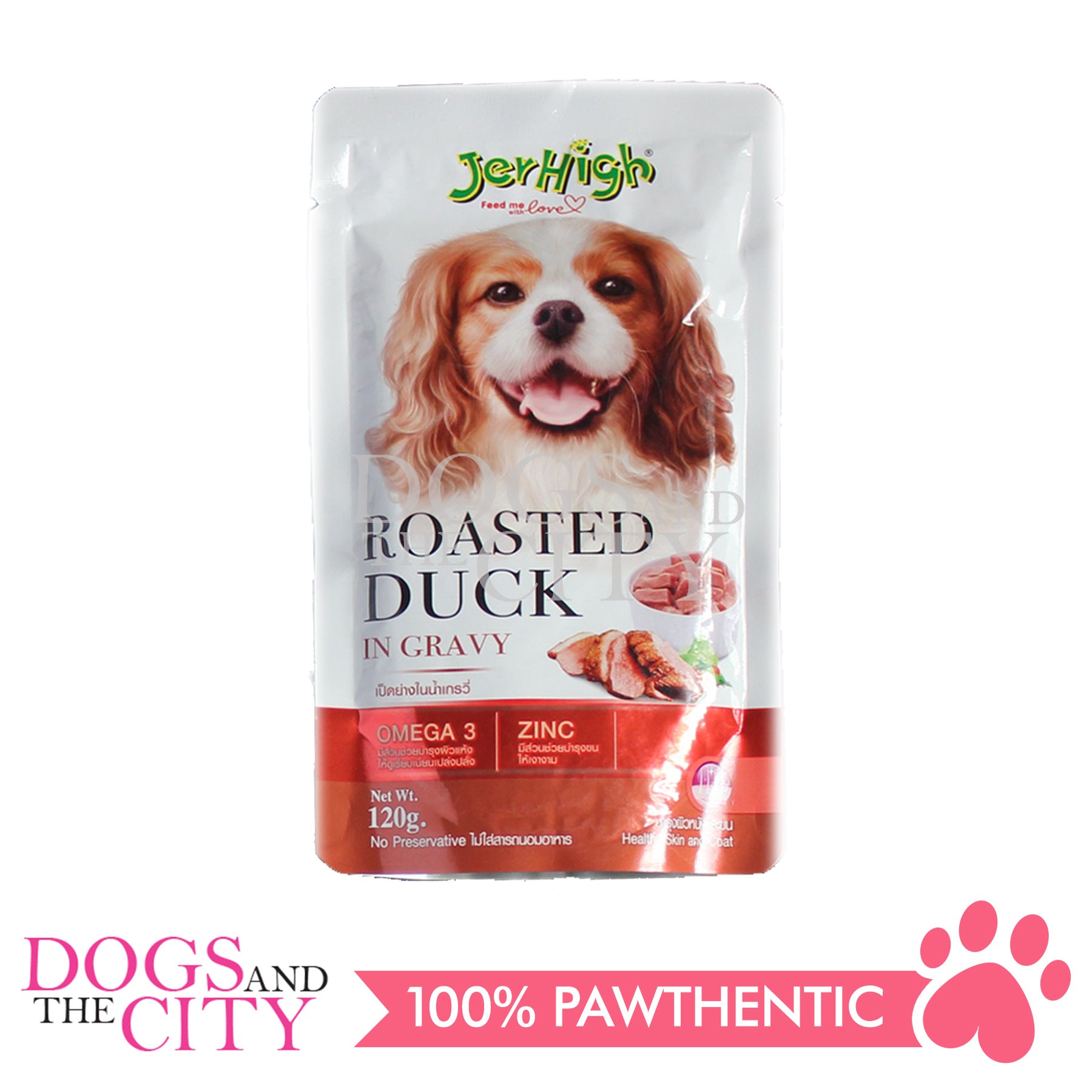 JerHigh Roasted Duck in Gravy is made from real chicken and duck meat and has been precisely prepared by our highly experienced expert team. It has also been researched and meticulously tested in the laboratory to ensure that the treat is hygienic, safe, and filled with all of the nutrients man’s best friend needs. You sure can reward them regularly with JerHigh Roasted Duck in Gravy so they always stay healthy, happy, and full of energy.