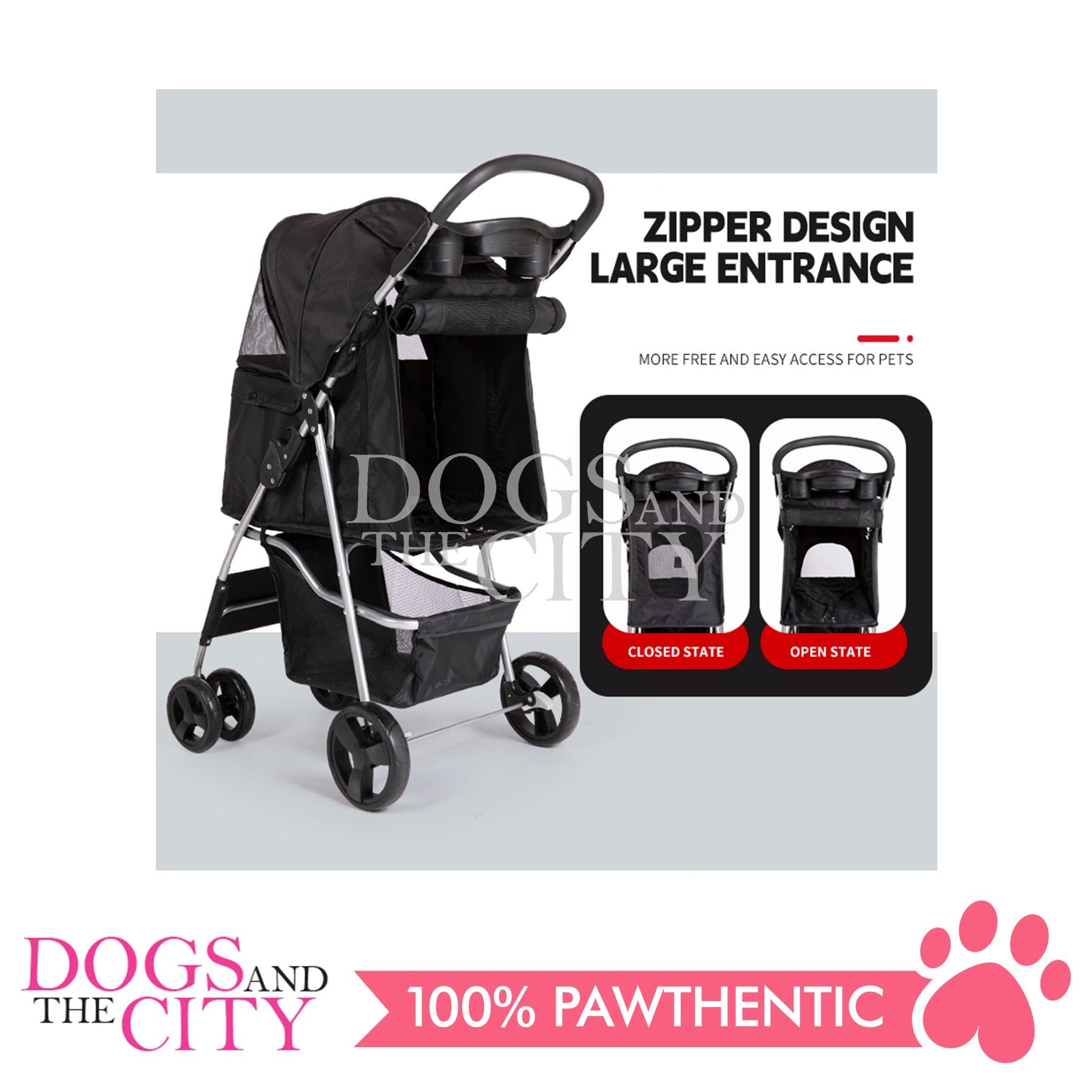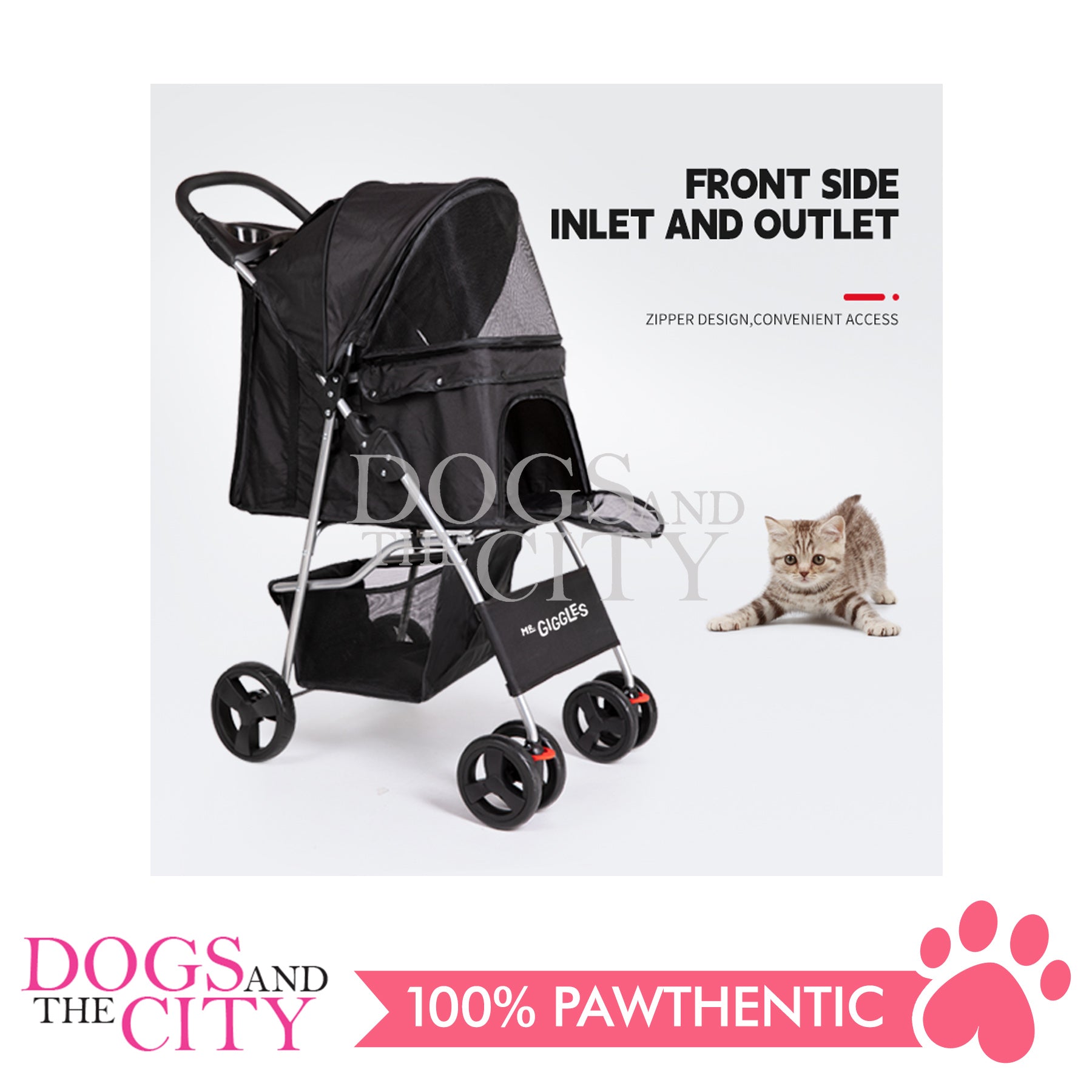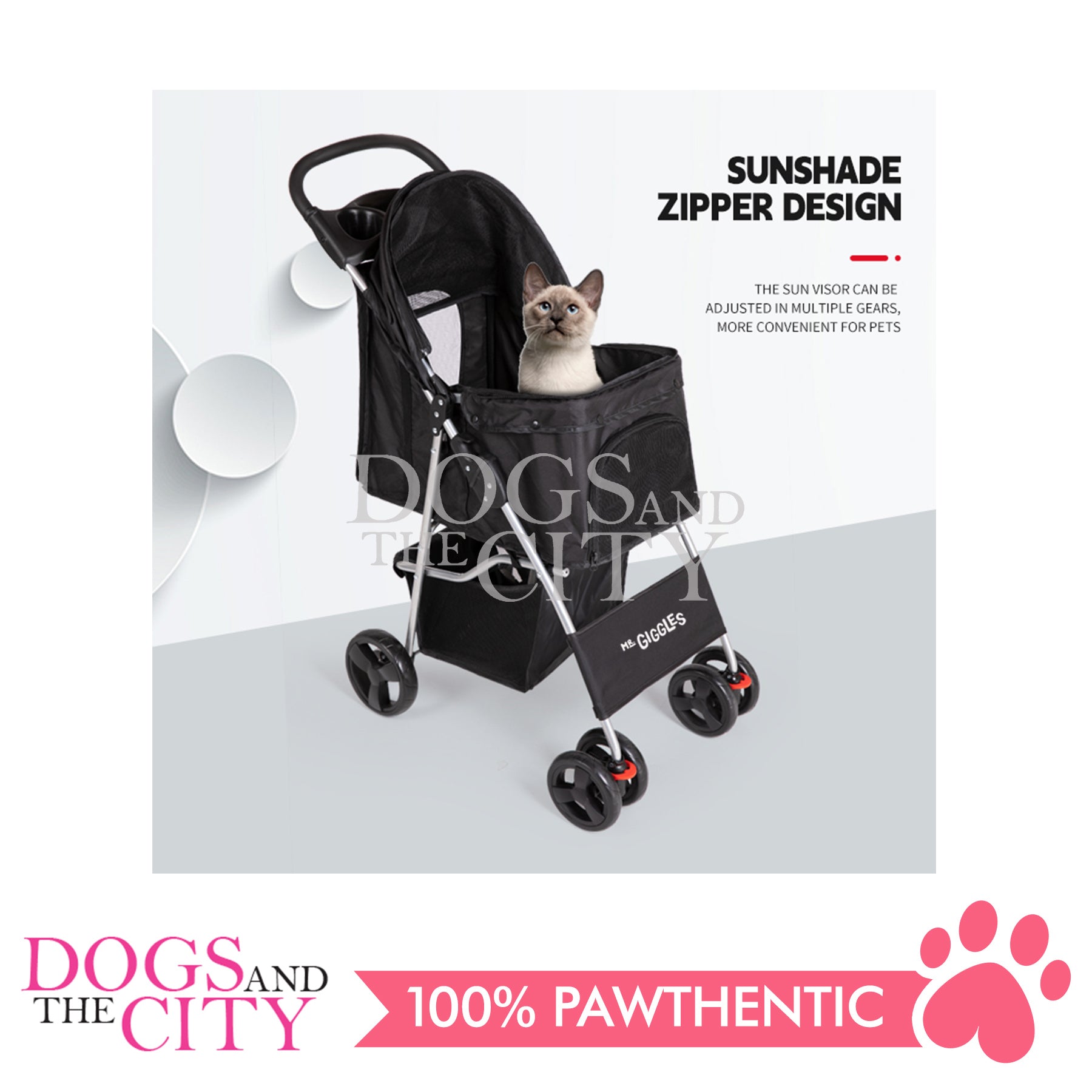 Mr. Giggles SP02 4 Wheels Pet Stroller with One Hand Folding Black